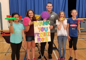I spent 5 days at St Vincent Catholic Elementary School for a frisbee residency. I worked with more than 150 students from Pre-Kindergarten to Grade 6, showing them what’s possible with frisbee, challenging them to get Unplugg’d, encouraging them to not give up, and having lots of fun by making up games, making up throws, discovering how frisbees fly, and giving them an alternative to video games, movies, and tv.